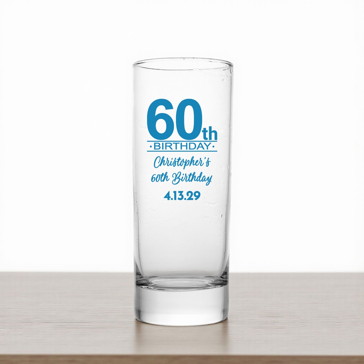 Honor six decades of memories with our 60th Birthday Personalized Tall Shot Glass. Customizable with names, age, or a special message, this elegant glass is perfect for milestone birthday celebrations. Ideal for shots, cocktails, or whiskey, it’s a thoughtful keepsake that adds a personal touch to the party.