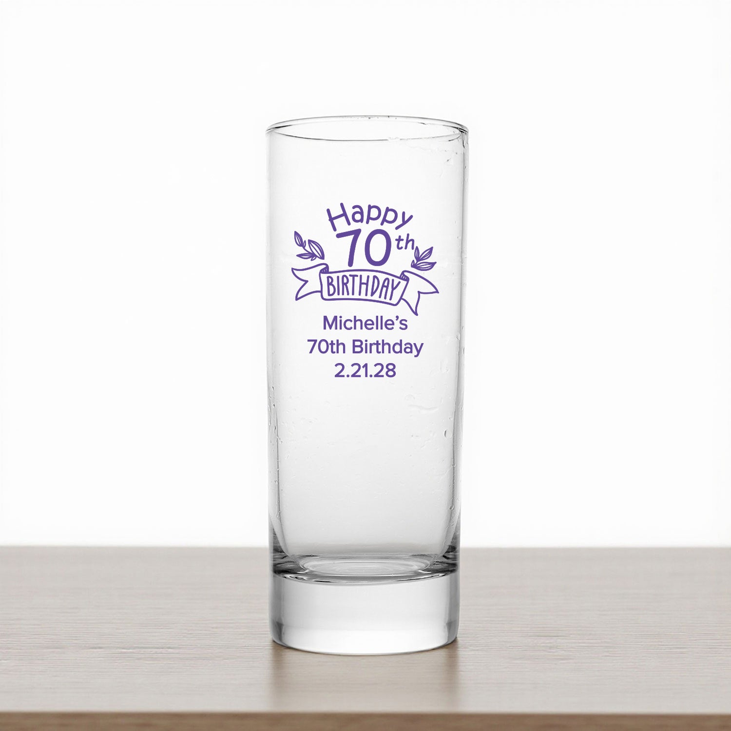 Celebrate seven decades of memories with our 70th Birthday Personalized Tall Shot Glass. Perfect for milestone birthday parties, this elegant glass can be engraved with the celebrant’s name, age, or a custom message. Ideal for shots, cocktails, or whiskey, it’s a thoughtful keepsake that makes every toast special.