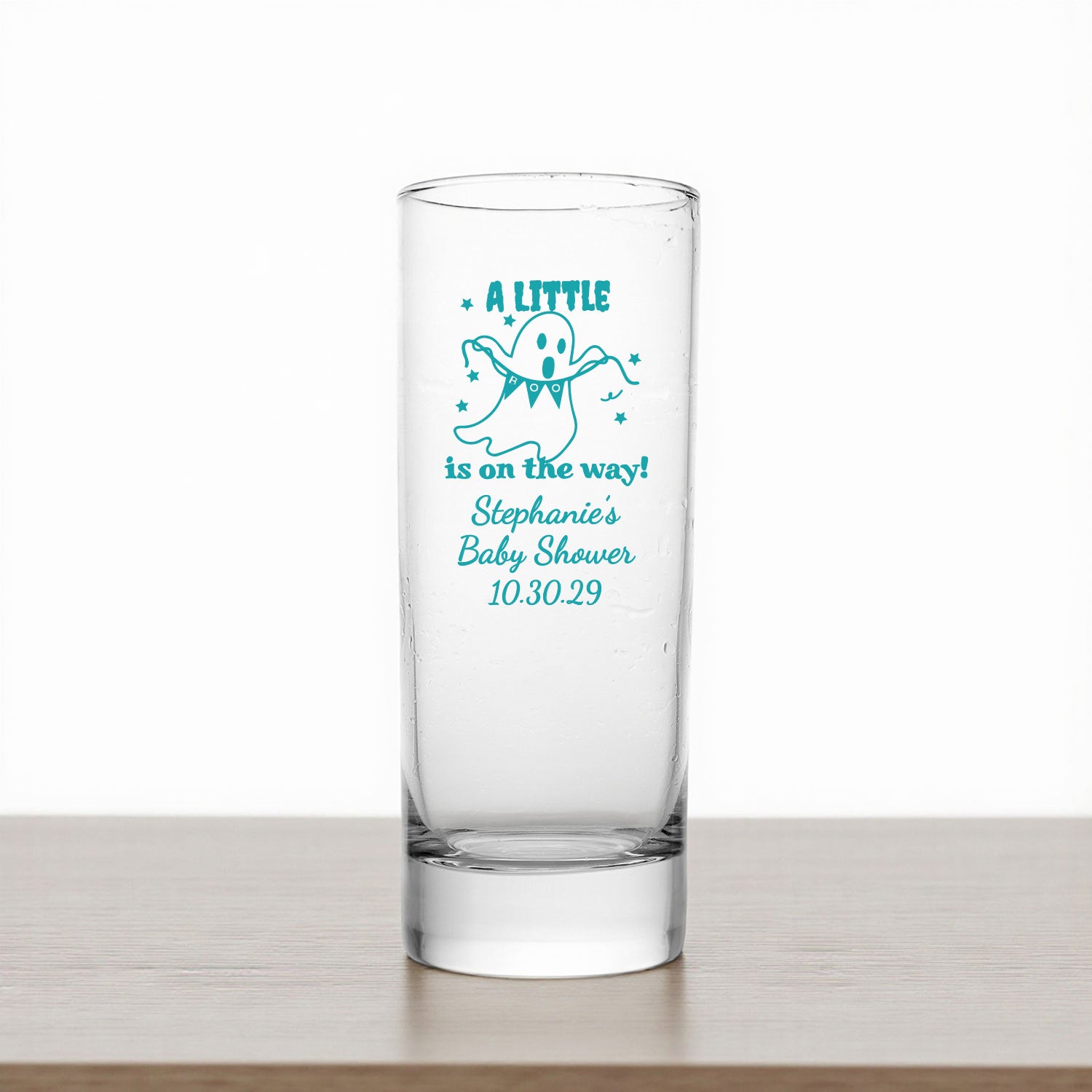 Celebrate a Halloween-themed baby shower with our A Little Boo Is On The Way Personalized Tall Shot Glass. Perfect for seasonal celebrations, this glass can be engraved with names, date, or a fun message. Ideal for mocktails, shots, or festive drinks, it’s a memorable keepsake for guests and parents-to-be.