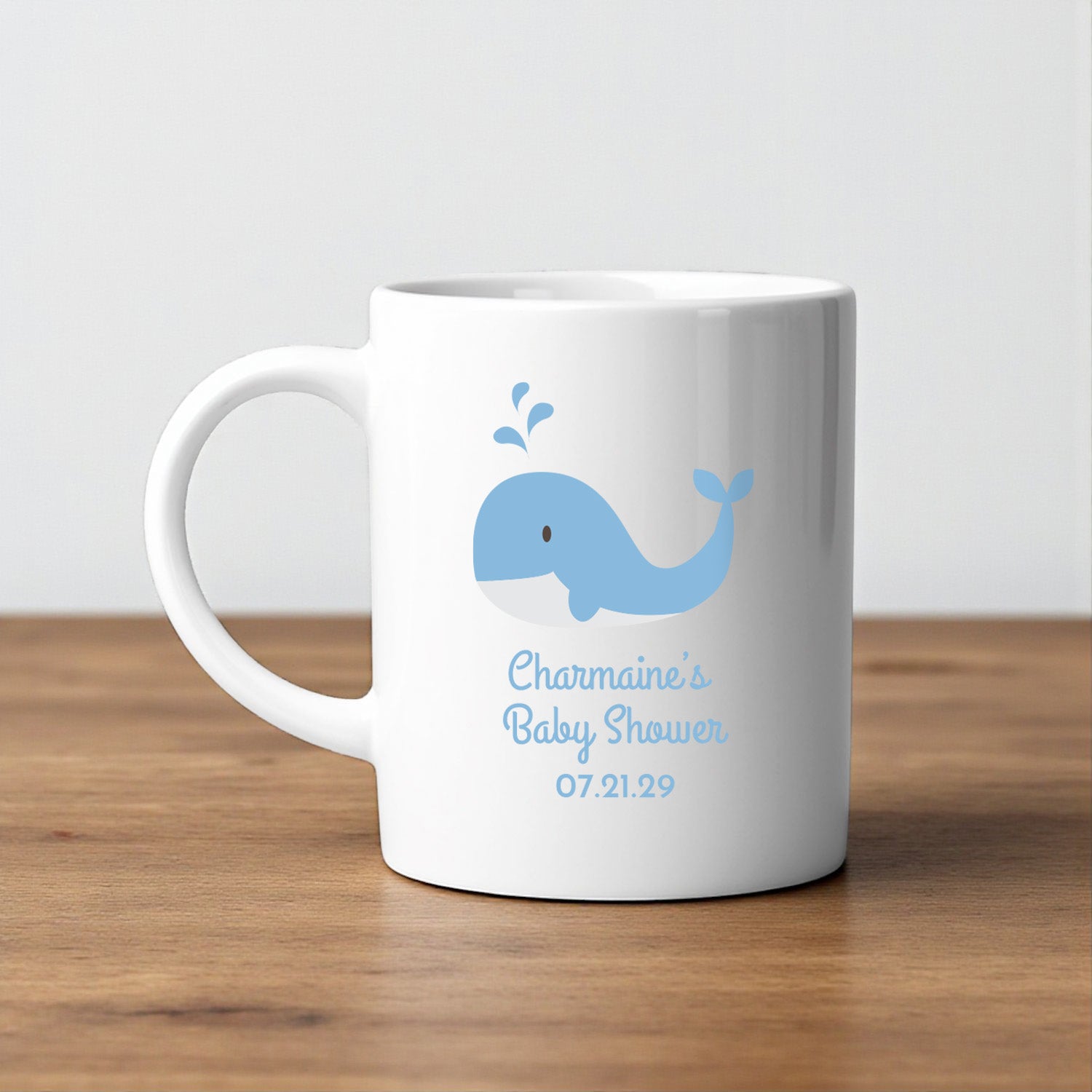 Make a splash at your baby shower with the Baby Whale Personalized White Ceramic Coffee Mug. This adorable design can be personalized with names and dates, creating a sweet and practical favor that guests will cherish.