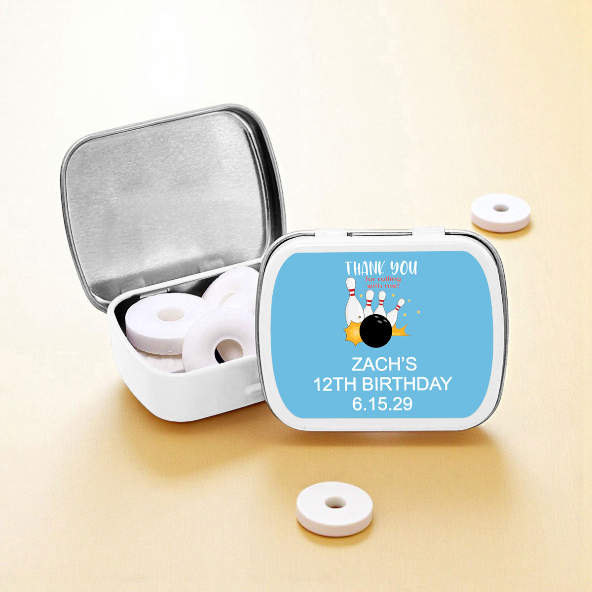 Bowling Kids Birthday Personalized Empty Mint Candy Tins (Set of 12)
