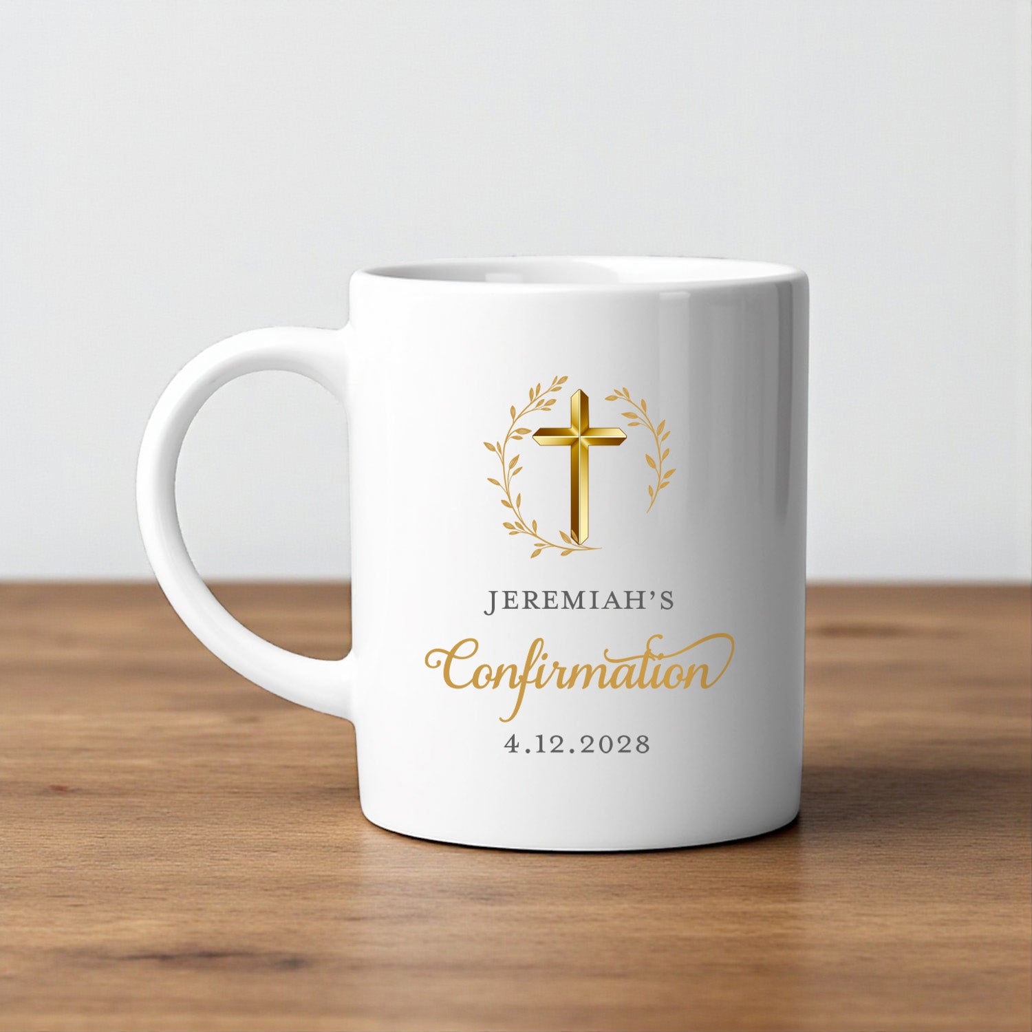 Celebrate a spiritual milestone with the Confirmation Personalized White Ceramic Coffee Mug. Perfect for confirmations or faith-based gatherings, this customizable mug can include names and dates, creating a meaningful keepsake for family and friends.