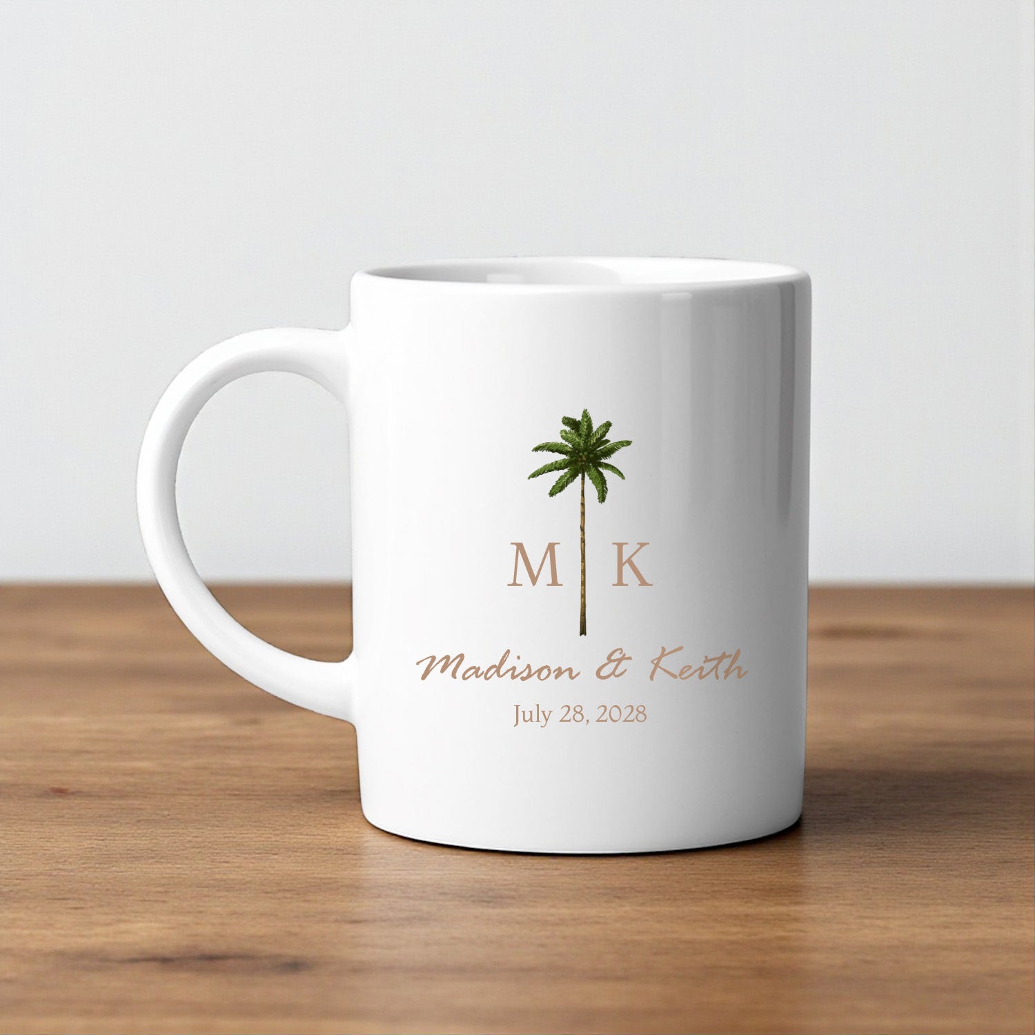 Bring tropical vibes to your celebration with the Palm Tree Monogram Personalized White Ceramic Coffee Mug. Perfect for beach weddings, summer parties, or destination events, this customizable mug combines coastal style with practical use, making it a keepsake guests will treasure.