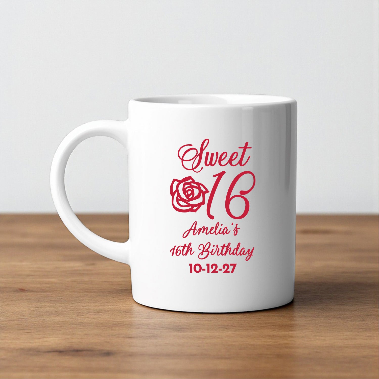 Sweet 16 Personalized White Ceramic Coffee Mug (Set of 12)