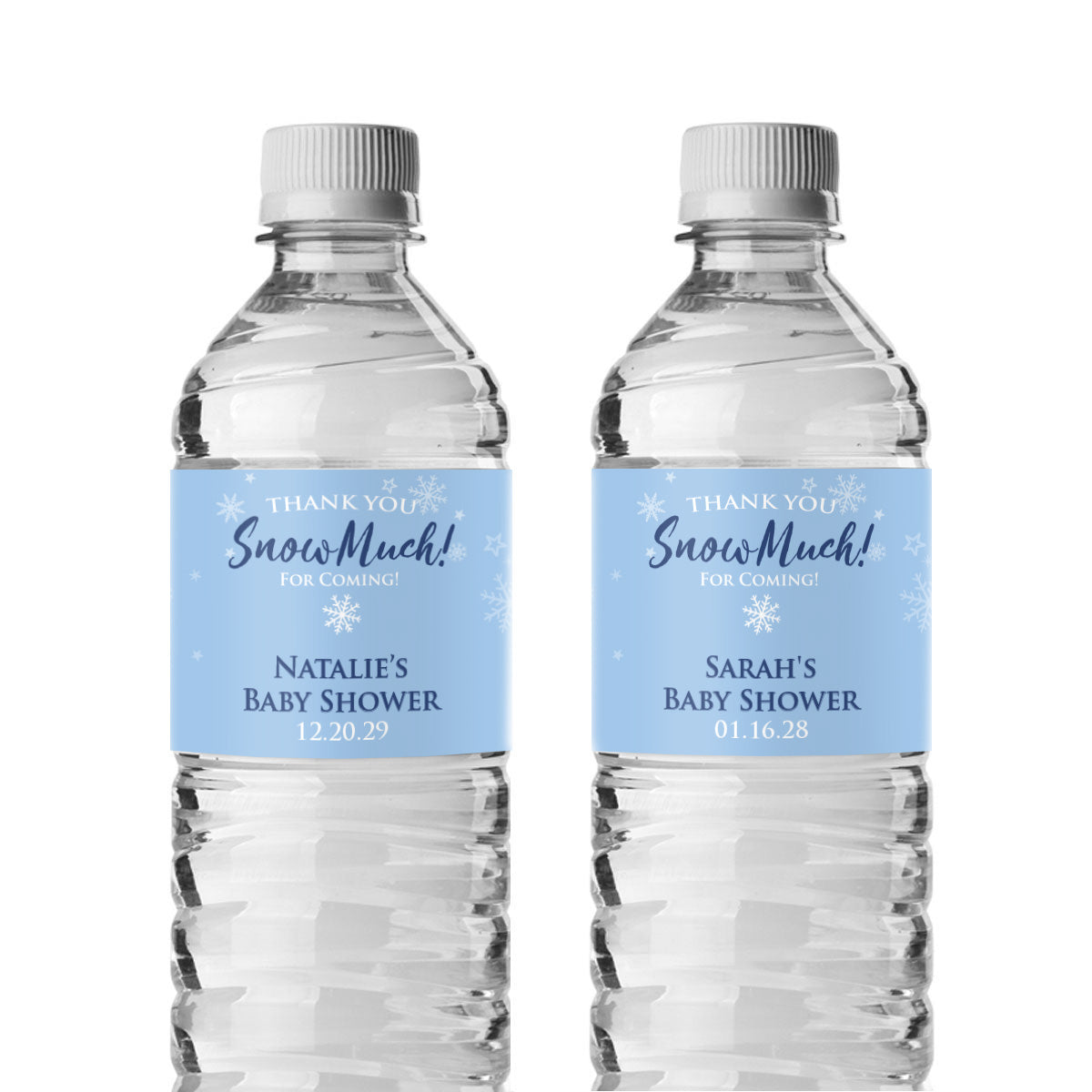 Add a special touch to your celebration with these charming Thank You Snow-Much! Personalized Water Bottle Labels. Featuring a beautiful winter design with delicate snowflakes, they’re perfect for winter weddings, baby showers, holiday parties, or any snowy-themed event. Customize each label with your name or message to bring a frosty sparkle to your décor and show your guests just how much you appreciate them.