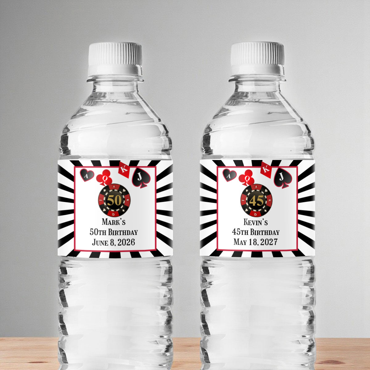 Vegas Birthday Personalized Water Bottle Labels (Set of 12)