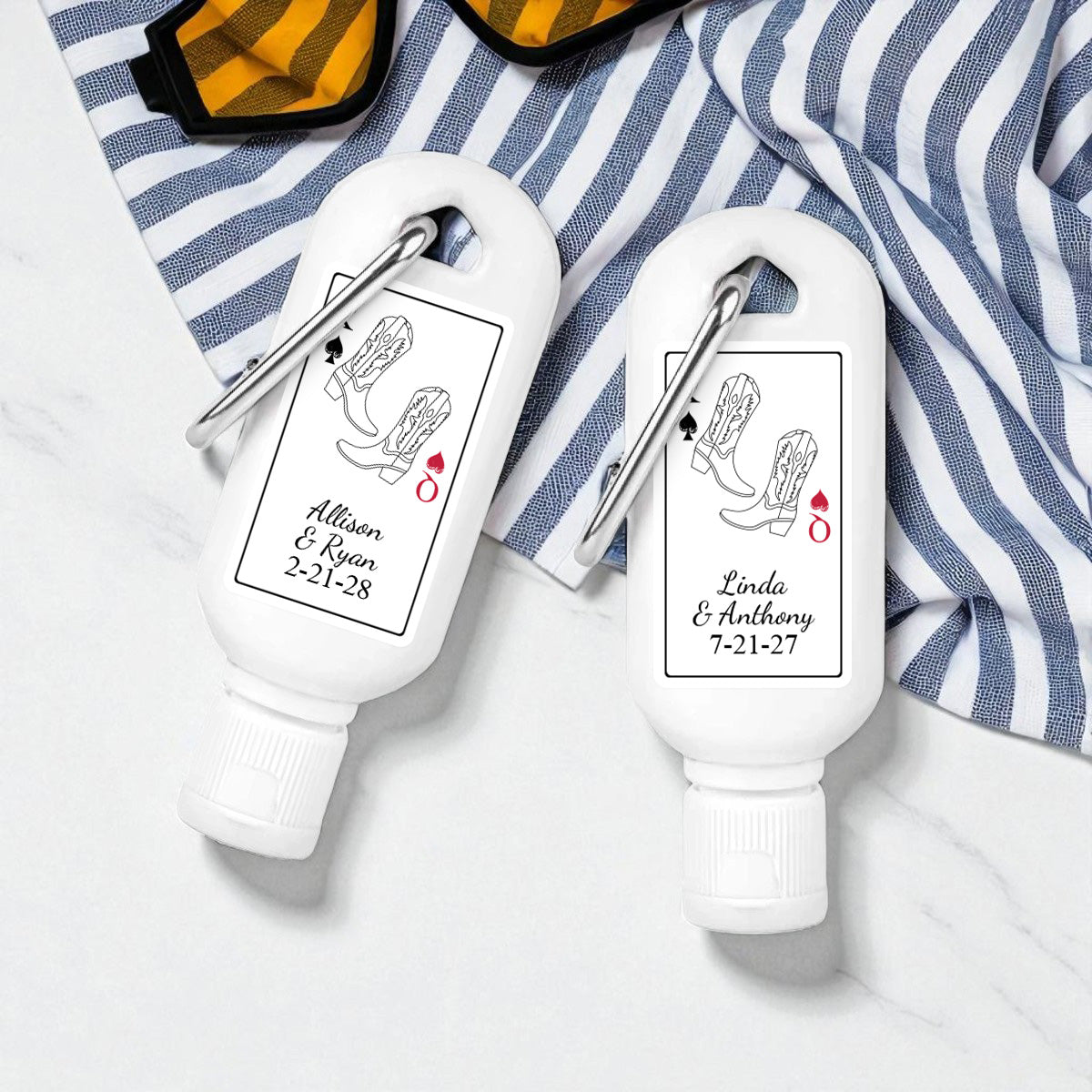 Western Cowboy Boots Personalized Sunscreen with Carabiner (Set of 12)