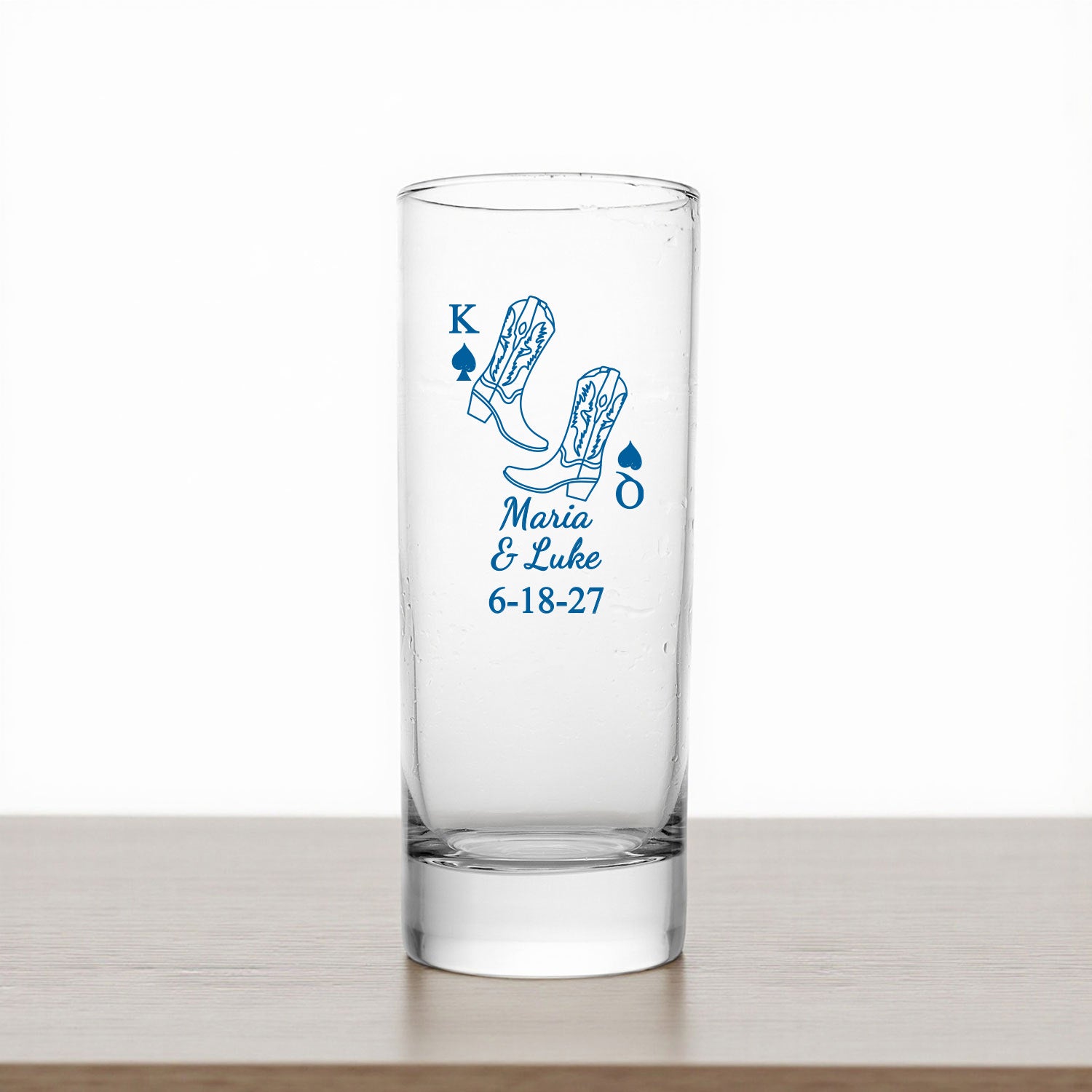 Celebrate a rustic or western-themed event with our Western Cowboy Boots Personalized Tall Shot Glass. Perfect for bachelorette parties, birthdays, or themed weddings, this custom glass can be engraved with names, dates, or a special message. Ideal for shots, cocktails, or mocktails, it’s a stylish keepsake that adds a unique touch to your celebration.